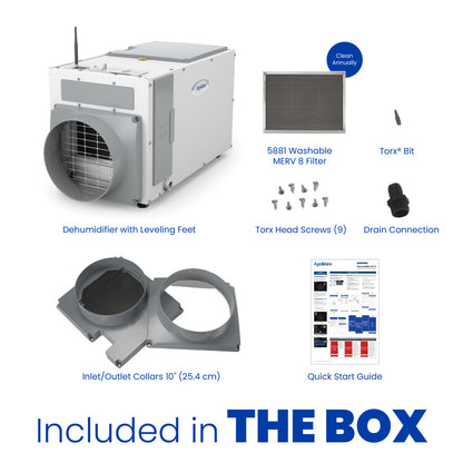 - PART OF THE APRILAIRE HEALTHY AIR SYSTEM – The E100W Dehumidifier is a part of your one-stop, all purpose investment toward a greater quality of life. The AprilAire Healthy Air System (additional components sold separately) combines fresh air ventilation, air filtration, humidity control, radon control, zoning and IAQ control, and UVC sanitization to address all aspects of Indoor Air Quality in the home.