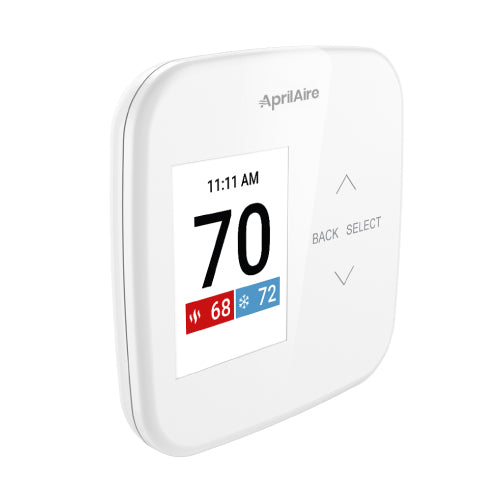 The AprilAire S86NMU Thermostat is easy to read, easy to set up, and easy to use. Features include a full-color graphical display, capacitive touch interface, and real language set up for easy installation and temperature control.